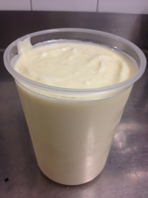 - Once all the oil has been added remove from the mixer and add the salt Pour the mayonnaise into containers and keep in the fridge till needed